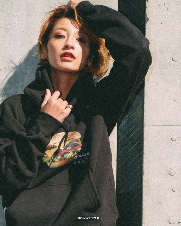 今回のビジュアルでは、DOUBLE CHEESEBURGER(R)の最新コレクションを含むFall/Winter2021アイテムを着こなしています。コーディネートに合わせた様々な表情にも注目。