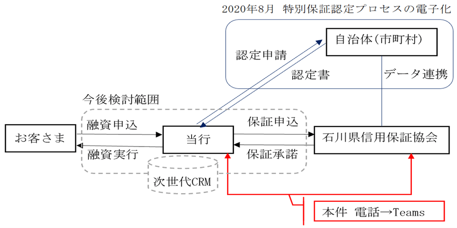 今後も紙媒体やメールによる保証申込の「Microsoft Teams」への一元化や現在開発中の次世代CRMとのデータ連携等を石川県信用保証協会と共に事業者支援という共通目的の実現に向けて取り組んで参ります。