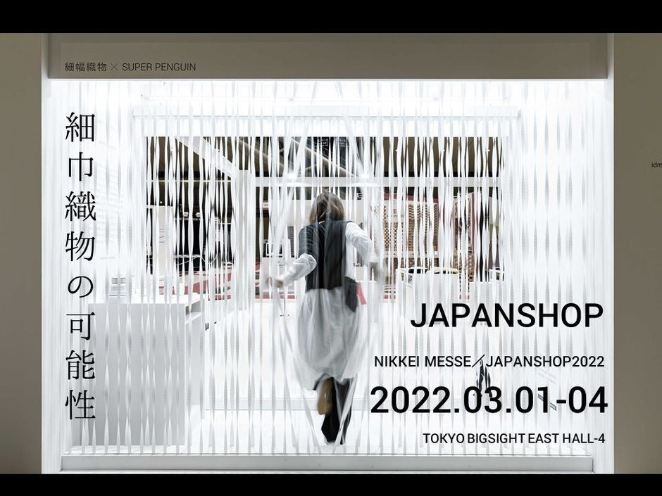 東京ビッグサイト等での展示会ブースを専門に手掛ける空間デザイン会社 SUPER PENGUIN株式会社(所在地:東京都品川区、代表取締役:竹村 尚久、以下 スーパーペンギン)は、3月1日から4日まで東京ビッグサイトで開催される日経メッセ、JAPAN SHOPにて、石川県かほく市の産業「ゴム入織物産業(細巾織物)」の素材を活用した空間演出を行います。空間デザインはスーパーペンギンの代表であり、展示会デザイナーの竹村 尚久が手掛けます。