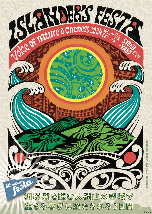 有限会社アラカグラフィス(所在地:東京都渋谷区、代表:烏頭尾 秀章)が協力・参画する、任意団体アイランダーズアソシエーション(islanders' ASSOCIATION:プロデューサー:木村公彦 FENinc.)は、海洋民族文化と自然と共生するすべての人々に向けた新しいイベント「アイランダーズフェスタ Vol.01_2024」を8月30日(金)~9月1日(日)の3日間、相模湾を臨む横須賀市・大楠山の麓「ショクヤボ農園」にて開催します。