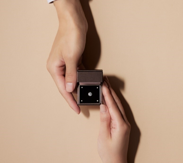 本物のダイヤモンドの輝きで、忘れられないプロポーズを。 アイプリモでは最高のプロポーズを演出するために専用の「ダイヤモンド プロポーズボックス」をご用意。スーツの内ポケットにも自然に入る大きさなので、サプライズでお渡しする場合にもぴったりです。