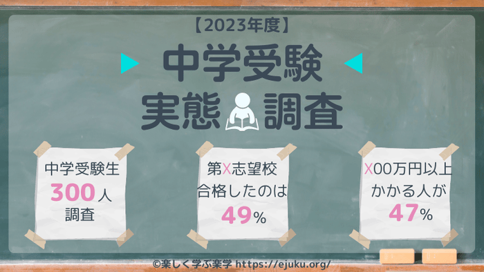 中学受験に役立つ学習情報の提供を行う総合メディア「楽しく学ぶ楽学」は、2023年2月7日(火)~2023年2月20日(月)、2023年度中学受験の経験者300人を対象に、「中学受験の実態調査」を実施しました。