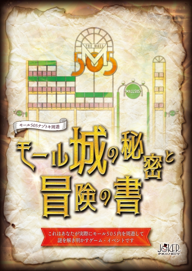 茨城県南を中心にイベント制作・運営を行っているJOKER PROJECT(代表:矢口 優希)は、自身が店舗を置く茨城県土浦市川口にある複合型ショッピングモール「川口ショッピングセンター モール505」にて、実際にモール内を探索しながら謎を解くゲームイベント「モール505ナゾトキ周遊 モール城の秘密と冒険の書」を開始いたしました。