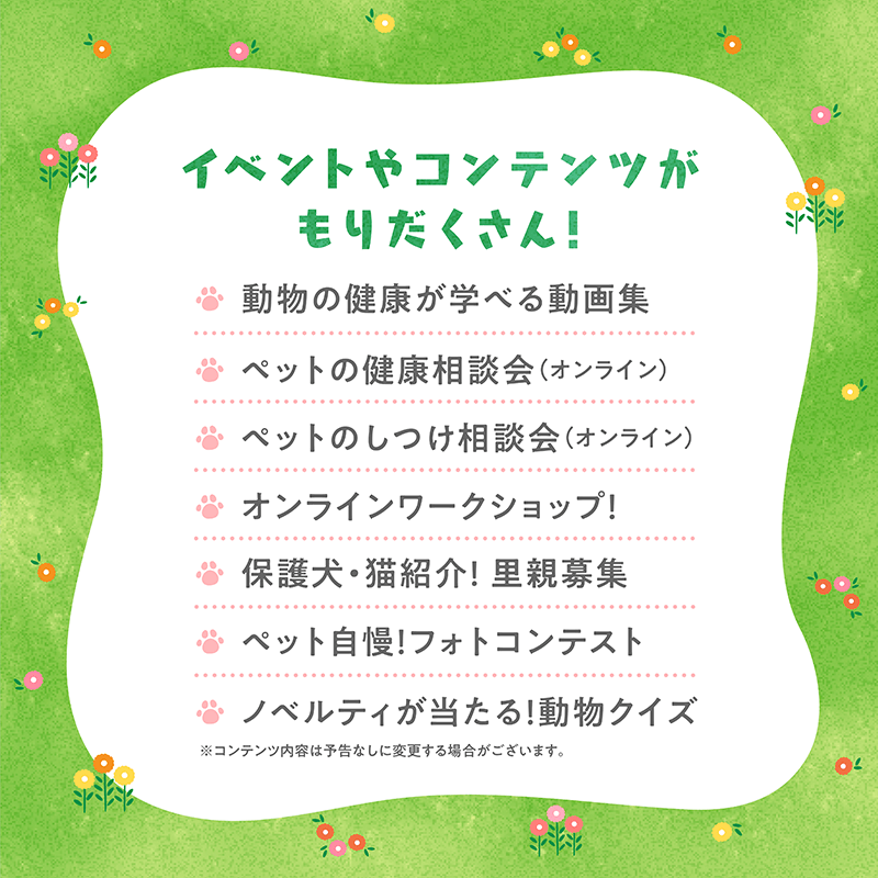 コンテンツ内容: ・ペットのお悩みはプロにお任せ!相談会/ワークショップ