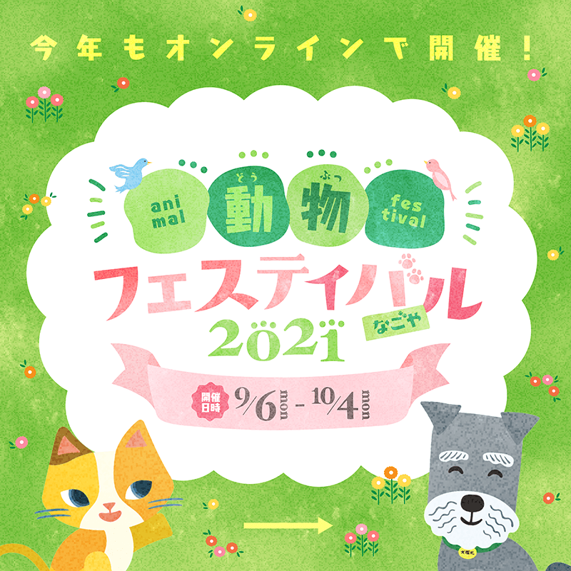 公益社団法人名古屋市獣医師会では、2021年9月6日(月)~10月4日(月)に「動物フェスティバル2021なごや」を名古屋市と共同でオンライン開催いたします。