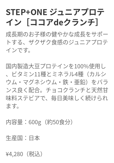 「STEP+ONE ジュニアプロテイン」の6つの特長