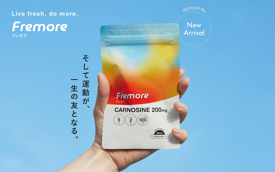 運動を楽しく習慣に!カルノシン配合サプリメント 「Fremore(フレモア)」10月9日(木)販売開始