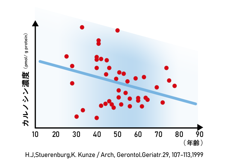 体内のカルノシン濃度は不安定で、加齢や食生活、個人差によって減少しやすいため、毎日の補給と運動によって体と心の健康を整えることが大切です。