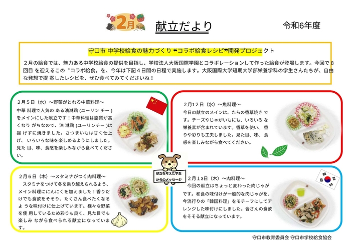 ―守口市中学校コラボ給食レシピ開発プロジェクト8年目―