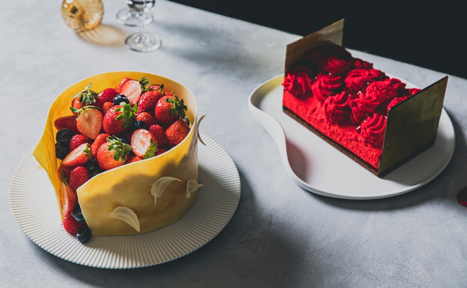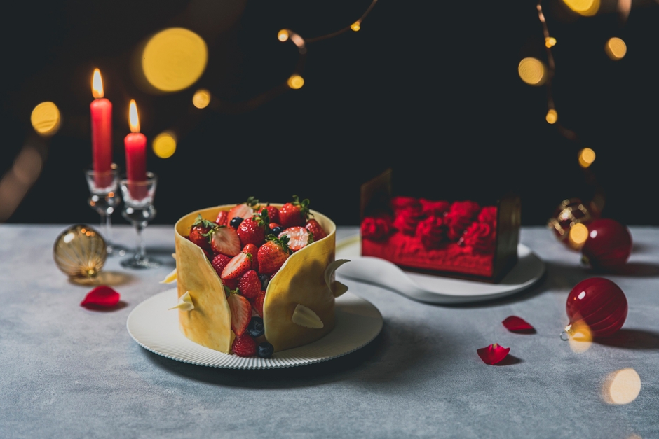 ビビットなレッドが印象的なラズベリーノエル、「ドラマティック・ルージュ -Dramatic Rouge-」や、溢れ出るほどの“あまおう”いちごを使用した「ドラマティック・フレーズ -Dramatic Fraises-」など、一目惚れするような印象的かつ情熱的なクリスマスケーキをご用意しました。当ホテルのペストリーシェフ・渡邊真吾による2021年新作コレクションです。