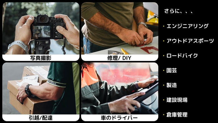 DIY、自転車・バイク整備、園芸作業、キャンプ、釣り、建設現場、配送業務など、様々なシーンで活躍します。特に作業中にスマートフォンやタブレットの操作が必要な方には最適な一品です。