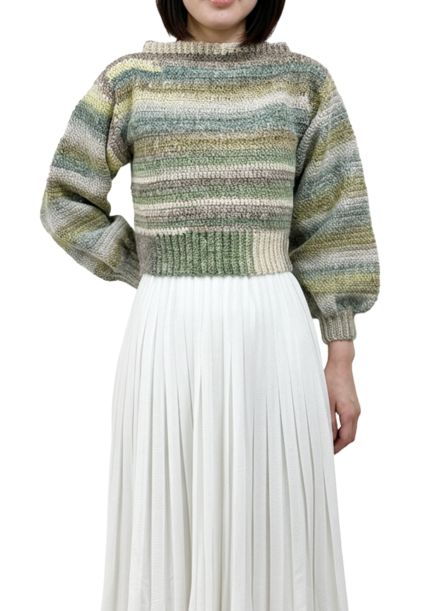 山之内すずさんがX(旧Twitter)に投稿した、ユザワヤオリジナル毛糸「Siena」で編んだショート丈セーターが、編み物キットになりました。