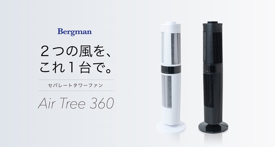 2つの風を、これ1台で。上下別の方向に風が行き届く 『セパレートタワーファン Air Tree 360』を 新ブランド「Bergman」より4月15日に販売開始