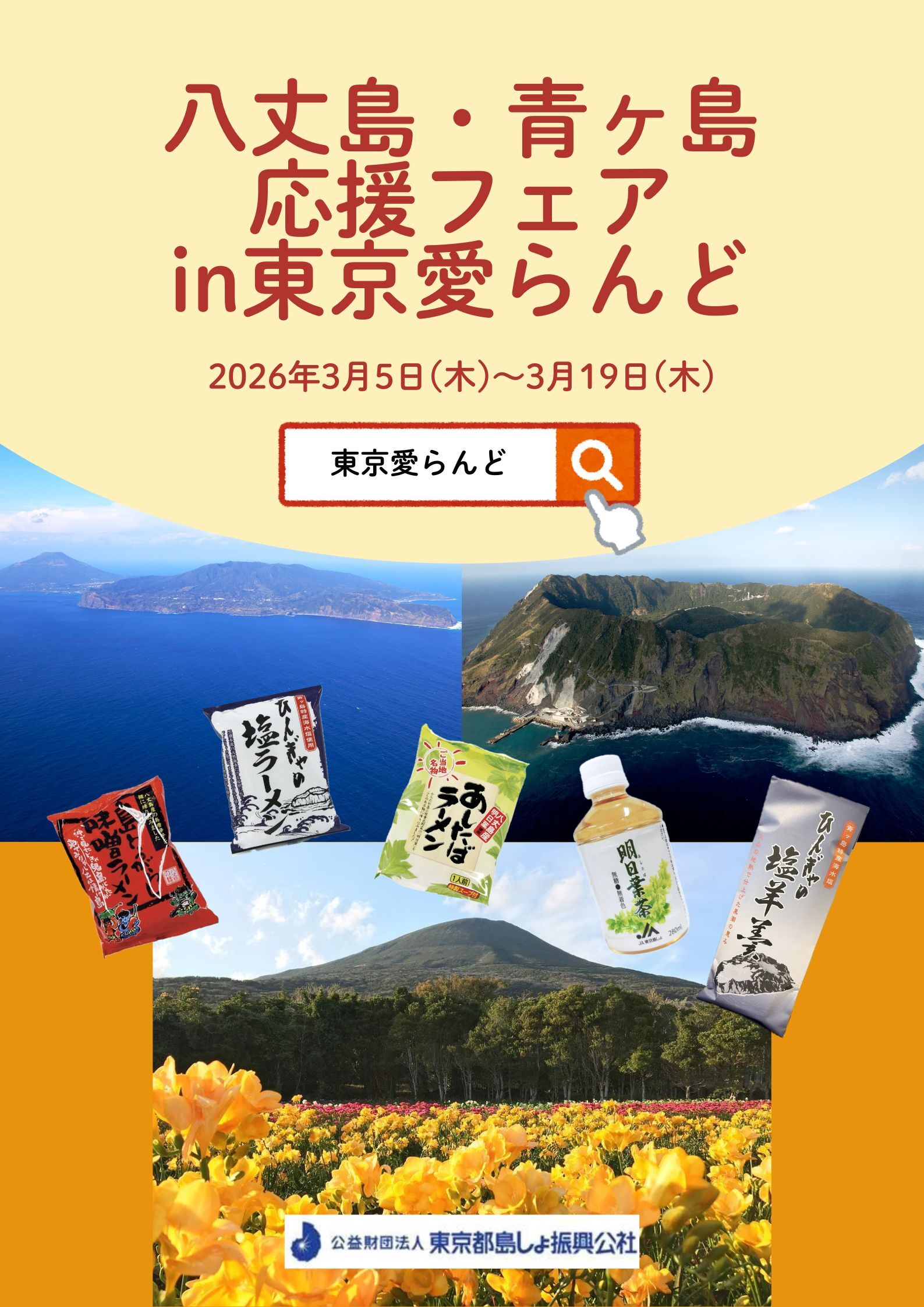 令和8年3月5日(木)~3月19日(木) 伊豆諸島・小笠原諸島のアンテナショップ「東京愛らんど」で 「八丈島・青ヶ島応援フェア」を開催