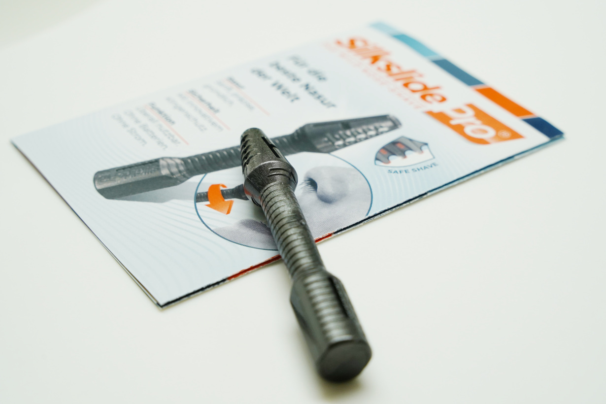 Silkslide Proは、ドイツで生産されており、特殊なプラスチックとゾーリンゲン製の最高級ステンレス鋼で作られたブレードで構成されています。