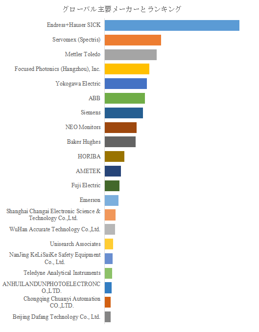 LP Informationのトップ企業研究センターによると、レーザーガス分析器市場の主要企業は、Endress+Hauser SICK、Servomex (Spectris)、Mettler Toledo、Focused Photonics (Hangzhou), Inc.、Yokogawa Electricを含むグローバルプレーヤーである。2024年、世界のトップ5企業は売上の観点から約44.0%、トップ10企業は約63.0%の市場シェアを持っていた。これら企業は技術力、製品信頼性、グローバルネットワークを武器に市場での優位性を確立している。特に、リアルタイムデータ取得、遠隔監視、マルチガス測定機能において製品差別化が進んでおり、各社は自社ソリューションの高付加価値化を追求する。高度なカスタマイズ対応やアフターサービス網の拡充も、競争力の向上に寄与する重要な要素である。