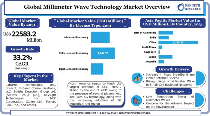 リサーチ・ネスターの一部門であるケネス・リサーチは最近、「ミリ波技術市場:世界の需要分析と機会見通し2031」と題する調査レポートを発表し、これには、業界の成長ドライバー、制約、需給リスクなどのパラメータを分析する著名な市場の一部と、COVID-19の影響、市場の成長に関連する最新のトレンドと将来の機会に関する詳細な議論も含まれています。
