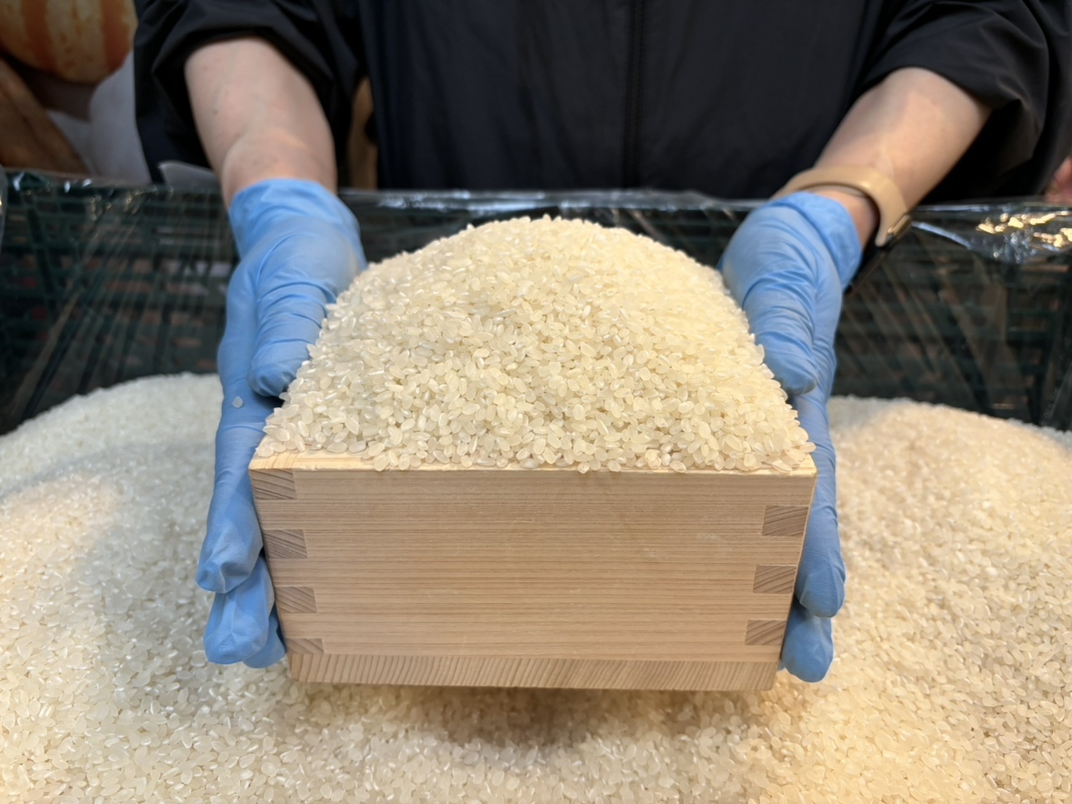 米の食味ランキングで特Aを獲得した「粒すけ」を5合枡にすくった分だけ持ち帰ることができる、大変お買い得なイベントです。