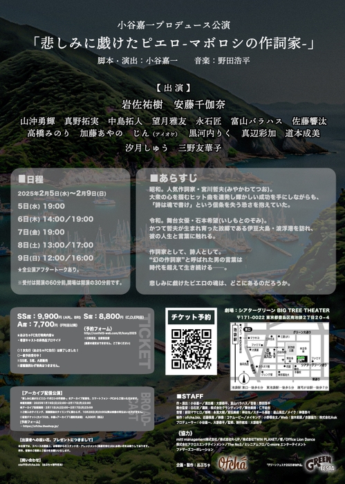 小谷嘉一プロデュース公演『悲しみに戯けたピエロ-マボロシの作詞家-』が2025年2月5日 (水) 〜 2025年2月9日 (日)に会場:シアターグリーン(東京都 豊島区 南池袋 2-20-4)にて上演されます。