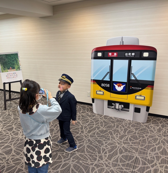 8000系パネル展示と子供用制服の貸し出しを行います。制服を着て8000系と一緒に写真撮影ができるチャンス!
