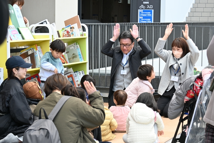 市駅前図書館による出張青空図書館が開かれ、13時と15時から約20~30分間のおはなし会も開催されます。