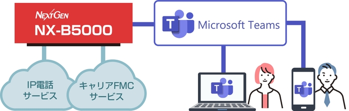 このたびの認定取得により「NX-B5000」は「Microsoft Teams」と連携し、既存の電話回線や電話番号を変更することなく、「Microsoft Teams」から外線および内線の音声通話が、通信キャリアの固定電話・携帯電話・IP電話サービスを使用して、シームレスに発着信することが可能となります。