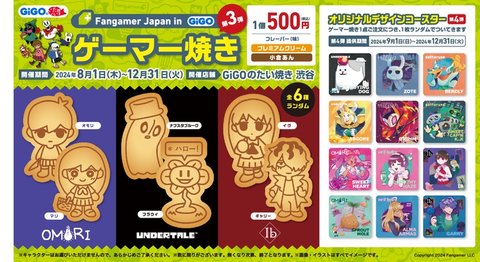 株式会社GENDA GiGO Entertainment(本社:東京都港区 代表取締役社長:二宮 一浩 以下当社)は、「Fangamer Japan in GiGO」での飲食コラボ(ゲーマー焼き、ゲーマードリンク)で提供しているオリジナルコースターが2024年9月1日(日)から新デザインの第4弾に切り替えとなります。