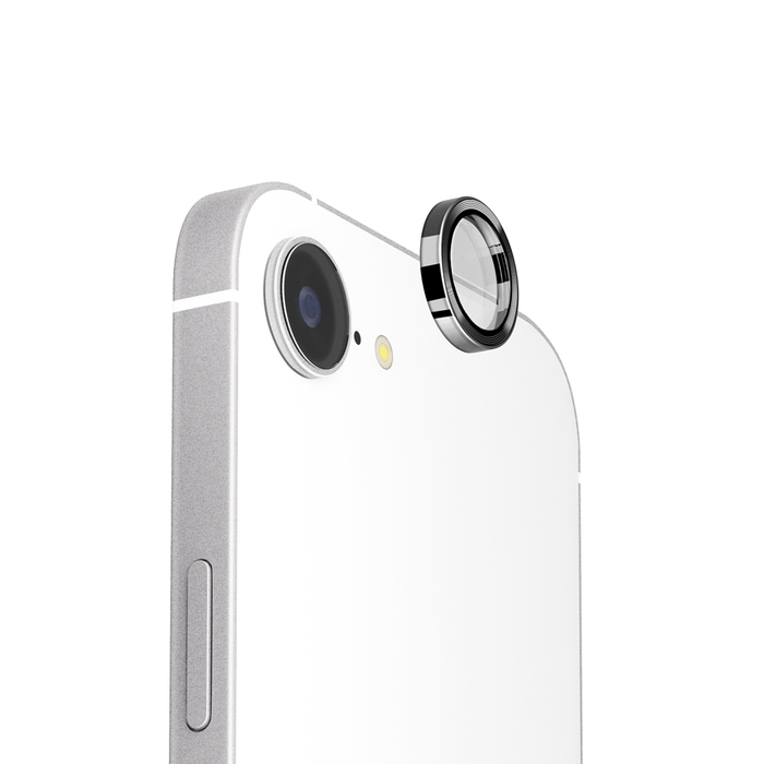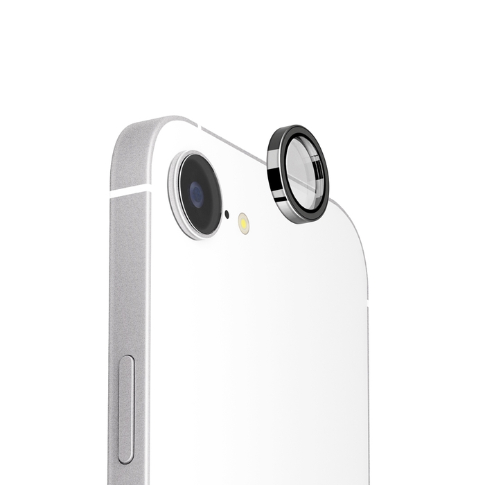 スタイリッシュなアルミタイプのiPhone 16e対応カメラレンズプロテクターです。透過率92%・表面硬度10Hのガラスと軽量なアルミニウムが一体成形されており、端末本体のカメラレンズをキズ付けず、美しくカメラレンズを守ります。着脱キット付きで貼り付け・取り外しも簡単です。貼り付け時に便利なクリーニングクロス・ほこり取りシール付き。