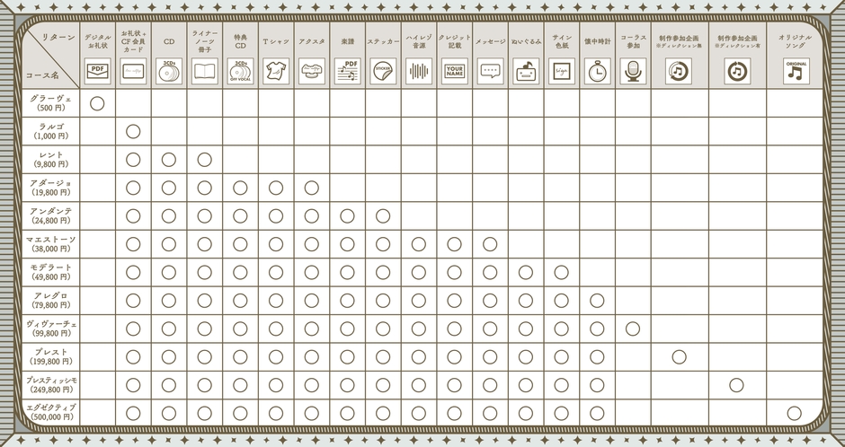 このリターンは本プロジェクトに収録される曲にコーラスとして参加できる権利です。