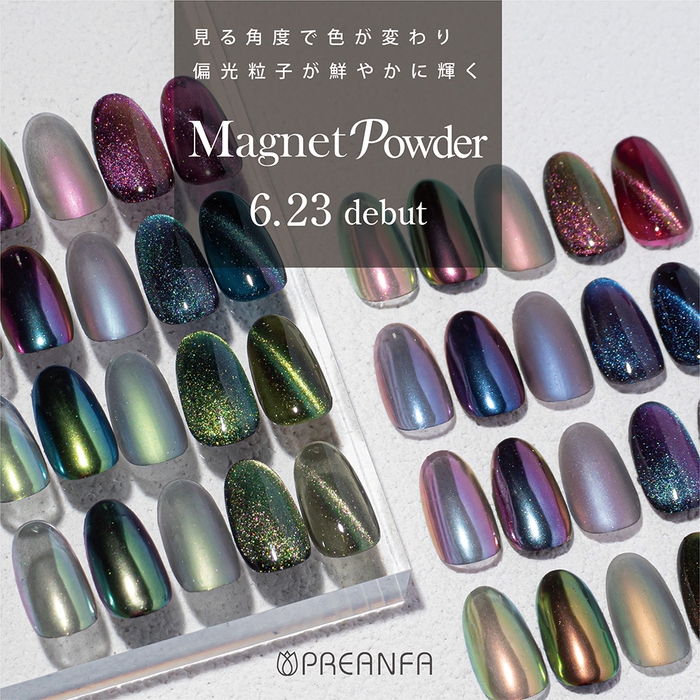 PREANFAより、角度によって色が変化する不思議な「マグネットパウダー」全8色が新発売。
