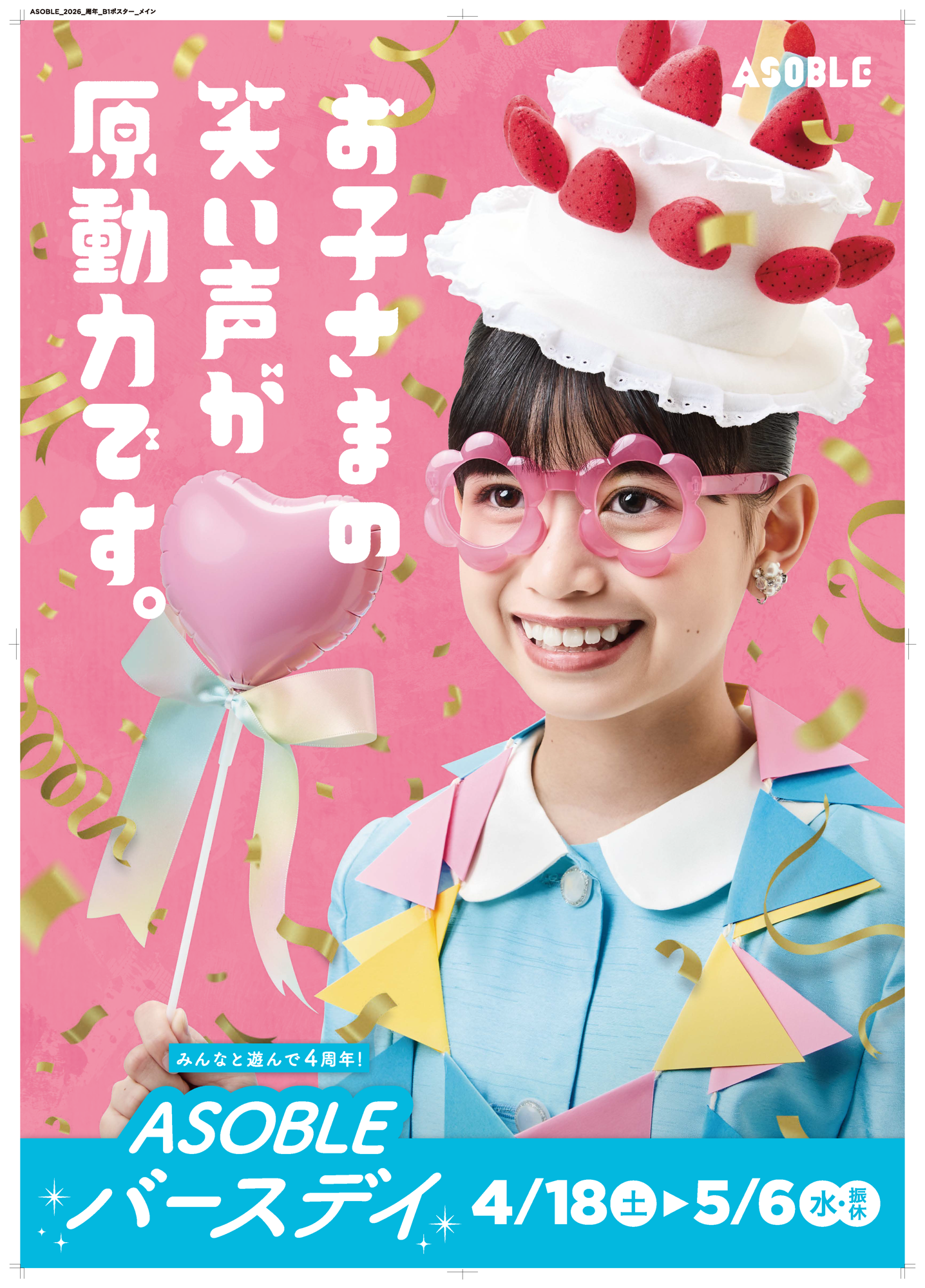 このたびASOBLEでは、4周年を記念し、ゴールデンウィーク期間に「ASOBLE 4thバースデイ」を開催いたします。館内を巡って楽しめる参加型企画や、クレーンゲームと連動したキャンペーンを通じて、ゴールデンウィークの思い出づくりを後押ししてまいります。