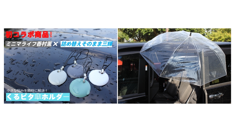 株式会社三輝(本社:東京都大田区、代表取締役:阿部 拓也)は、株式会社ミニマライフ(本社:愛知県岡崎市、代表取締役:香村 薫)と磁石入りの製品を傘に取り付けて、車の天板に引っ付けて使用する、「くるピタ傘ホルダー」を2020年11月30日(月)より株式会社CAMPFIRE運営のクラウドファンディングサイト「CAMPFIRE」にて開始いたしました。