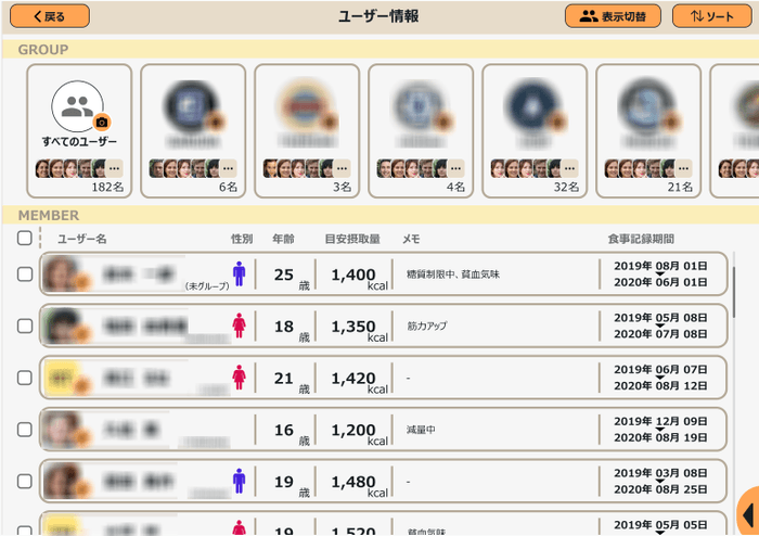 ・サプリメントなども充実の食品データベース