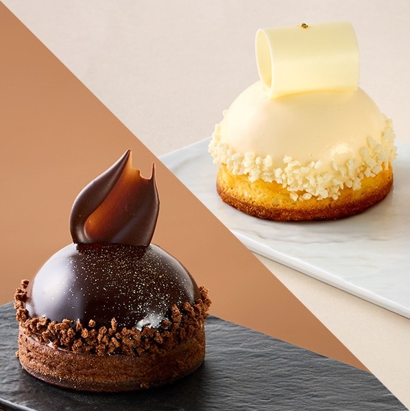 ショコラムースとフランボワーズムース、ココアスポンジを重ね、チョコレートを巻いて一つひとつ丁寧に仕上げたひと品。ベリーの華やかな酸味と、ショコラの濃厚な味わいを楽しめる、パティシエこだわりのショコラケーキです。