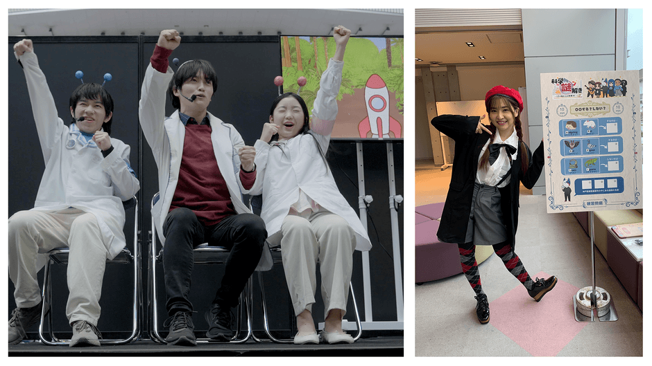 さらに、プロのキャストによる演技で謎解きの世界に誘います。キャストは謎解きのサポート役も担うため、謎解き初心者にはやさしく問題のヒントを伝えたり、参加者の興味に合わせて、関連した科学の知識を解説することもできます。