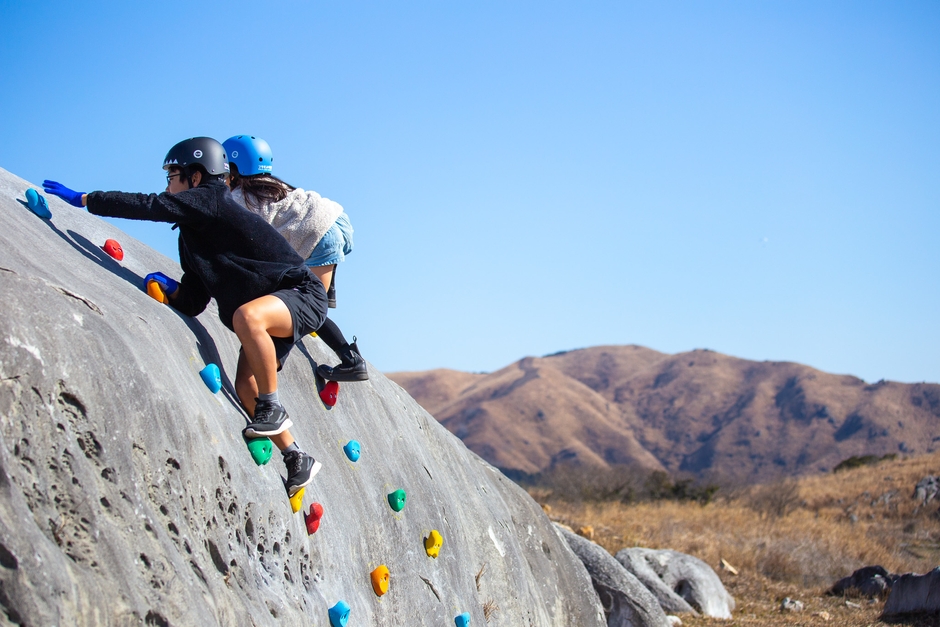 斜面、草原、石灰岩を登って降りる。ここでしか体験できないドキドキワクワクの新感覚アスレチックをお楽しみください。