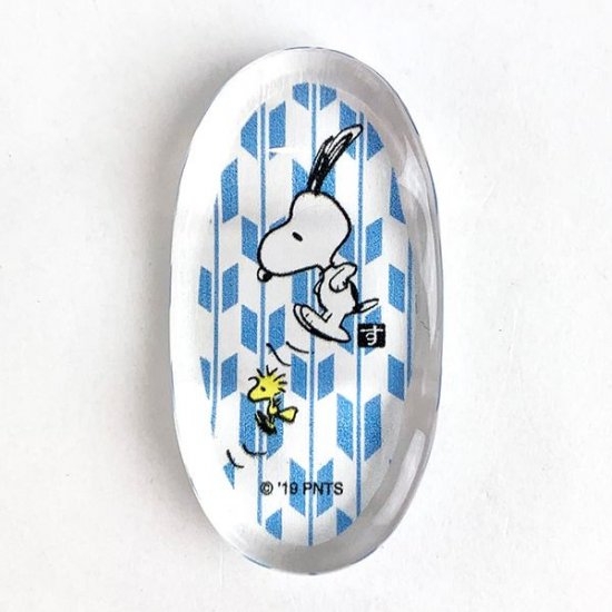 オーバルフォルムのアクリル樹脂製の箸置き。ガラス風の透明感が高くて、アクリルなので割れづらいといういいとこ取り。スヌーピーのデザインが描かれています。麻の花が背景にデザインされていて、和テイストな仕上がり♪
