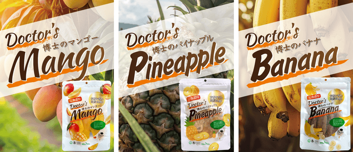 日本とベトナムの教授や博士号を持つ研究者が何年もかけて、ドライフルーツを作るのを目的に品種を選び抜き美味しさを研究し、土壌開発したドライフルーツ専用の畑で育てた、マンゴー、パイナップル、バナナを使用しています。