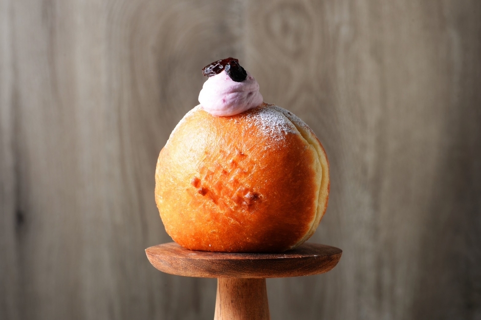 北海道産の生クリームにクランベリー、いちご、カシス、ラズベリーをたっぷり使用した果実ソースをブレンド。隠し味にはミルクドドレイクオリジナルカスタードを使用した生ドーナッツです。