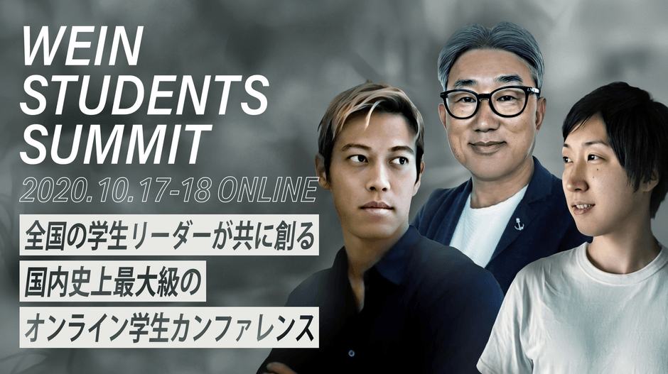 全国の学生リーダーが共に創る 1万人の学生が集う、国内史上最大級のオンライン学生カンファレンス 「WEIN STUDENTS SUMMIT」開催決定 大企業経営者、起業家、スポーツ選手、Youtuber、文化人ら 日本を代表する学生カンファレンス史上最高峰のスピーカー陣が登壇予定!