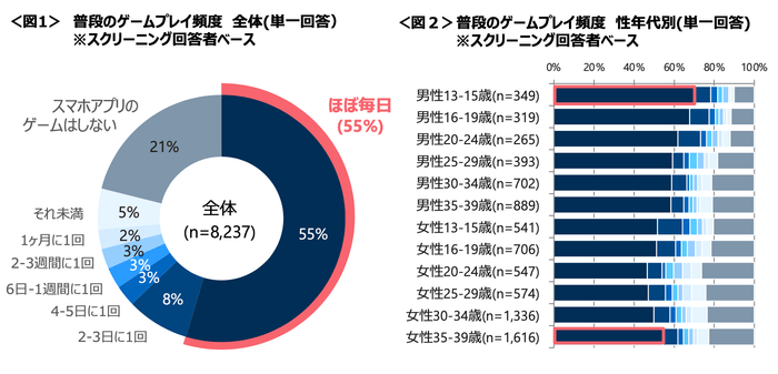 10~30代の約半数がほぼ毎日スマホアプリのゲームをプレイ。