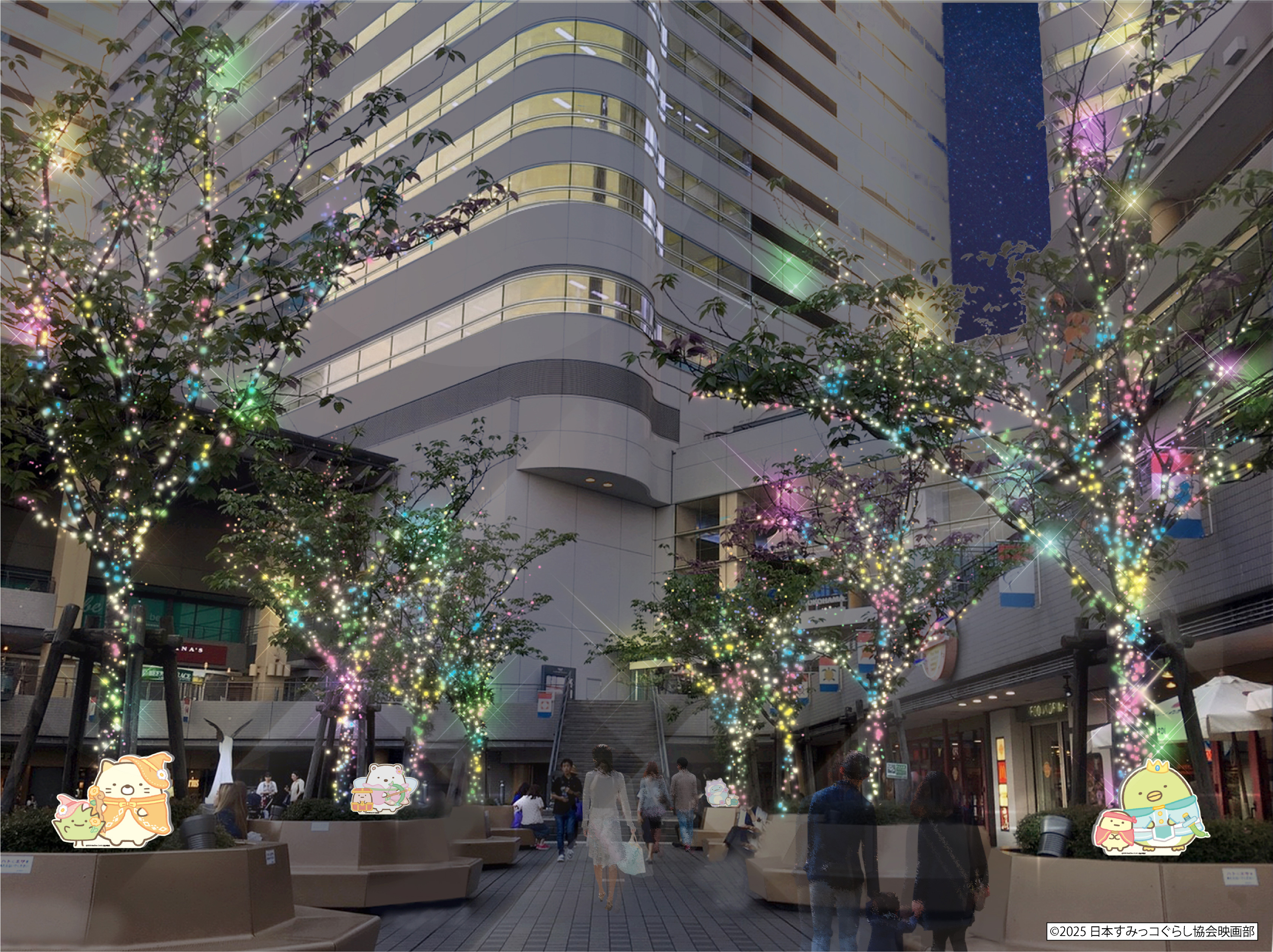 ツリー前には2025年10月31日(金)公開の『映画 すみっコぐらし 空の王国とふたりのコ』の世界観を凝縮したフォトスポットが登場。「おうじ」や「おつきのコ」、そしてすみっコたちと一緒に、ここでしか撮れない特別な1枚をお楽しみいただけます。