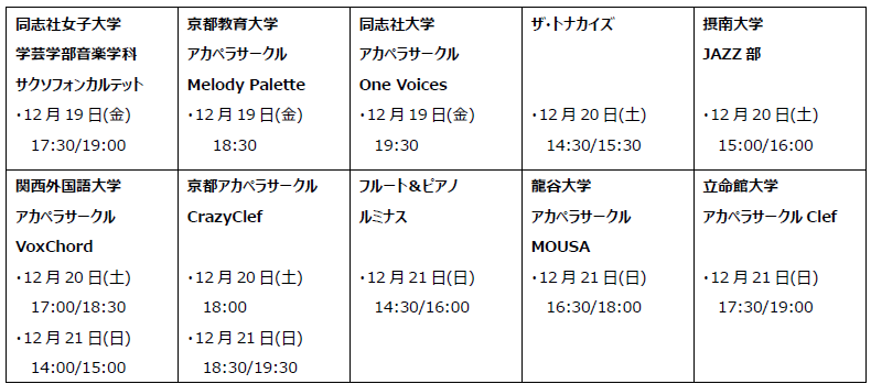 今回は昨年に続き冬の風物詩であるクリスマスマーケットを樟葉駅前広場にて開催します。クリスマスの雰囲気が味わえるお料理やホットワイン、クリスマスギフトにお勧めの雑貨などを販売します。会場では日替わりで京阪沿線の大学や社会人によるジャズやアカペラ、クラシックのクリスマススペシャルライブを予定しております。