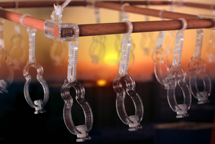 竿にハンガーを吊り下げるためのフックは柔らかいTPUという素材で作成しています。