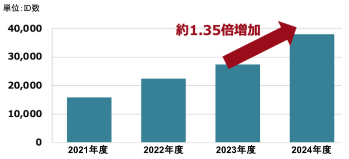 当社が提供するU-cubeサービスの中でも『U-cube voice』は特にID数が順調に拡大しており、2024年度におけるID数は約1.35倍に増加いたしました。