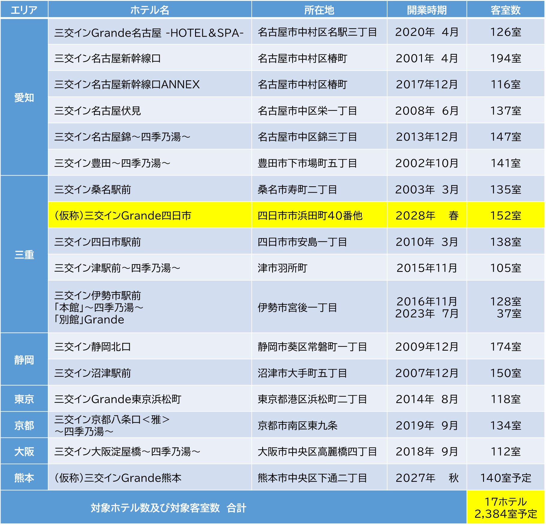 (ホテル概要は後述「3.(仮称)三交インGrande四日市について」をご参照ください。)