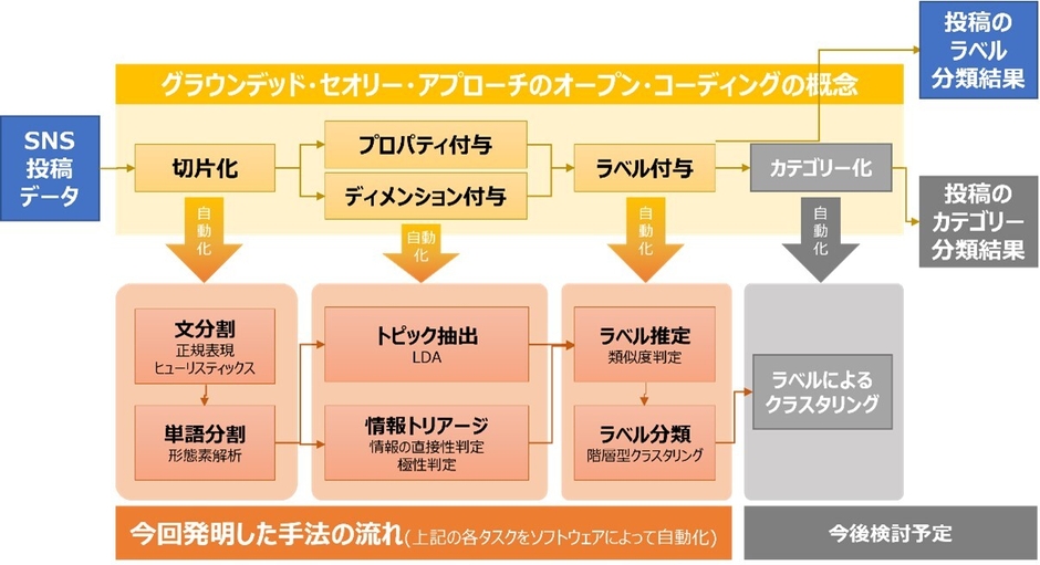 SNSから特定の分野に関する情報を抽出、分類する作業の自動化により、今までの方法では収集しづらかった幅広い意見の把握ができるようになる見通しを得ました。