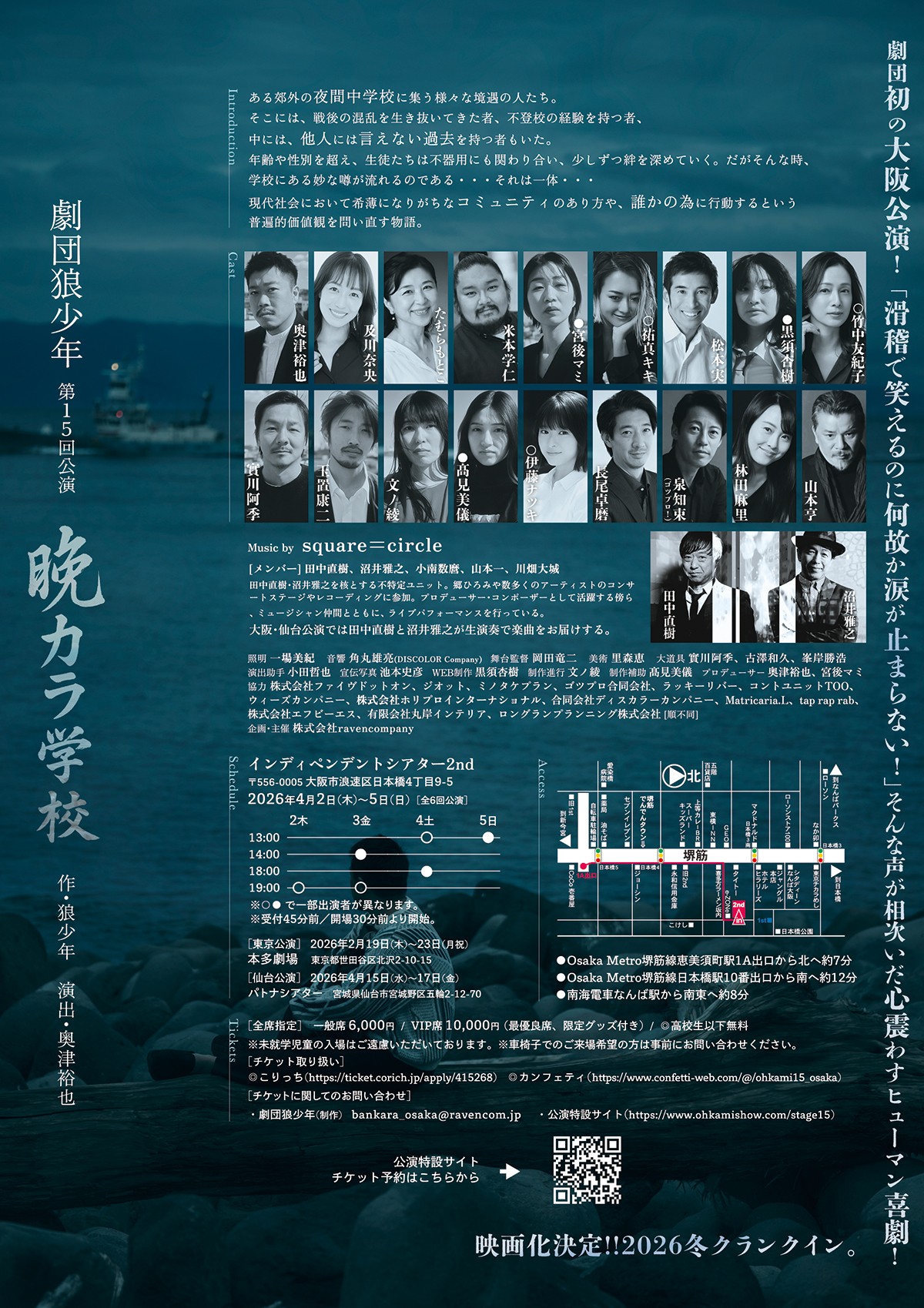 劇団狼少年 第15回公演『晩カラ学校』が2026年4月2日(木)~5日(日)にin→dependent theatre 2nd(大阪府 大阪市浪速区 日本橋 4-9-5)にて上演されます。