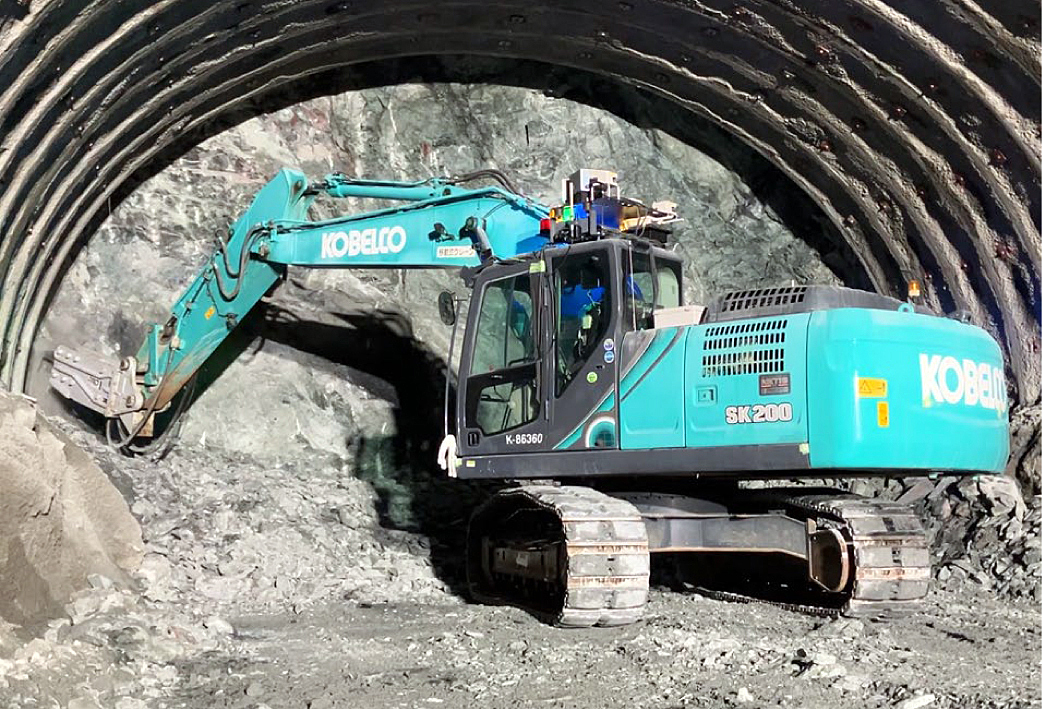 両社は、建設現場の生産性向上および無人化施工による安全確保を目的として、建設機械の自動運転技術に関する共同研究を進めてきました。これまでに、油圧ショベルの自動運転システムを共同開発し、ダンプトラックへの土砂積込み技術を確立しています(注2)。現在、これらの成果を基盤として、油圧ショベルの自動運転システムを応用し、山岳トンネル工事で使用するブレーカーショベルへの適用に取り組んでいます。今回、実トンネル環境においてあたり取り作業の自動化技術の動作検証を行い、自動運転技術実現に向けた第一歩を踏み出しました。