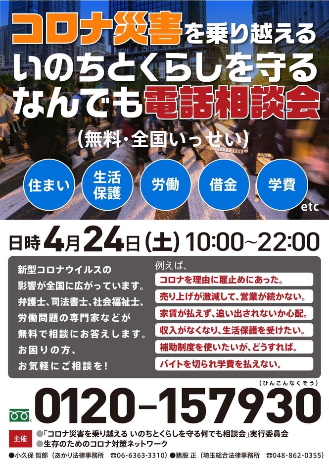 主催 :コロナ災害を乗り越える いのちとくらしを守る なんでも電話相談会実行委員会